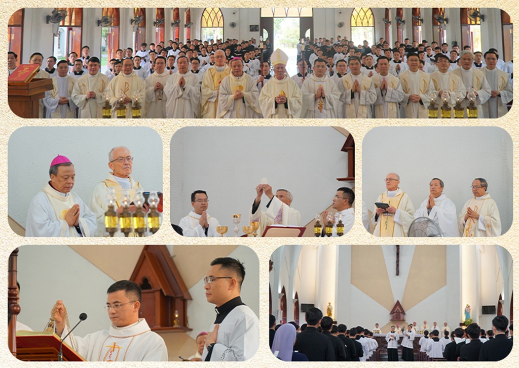 Sáng ngày 03/12/2025, trong niềm hân hoan của toàn thể Giáo hội mừng kính Thánh Phanxicô Xaviê – Bổn mạng các xứ truyền giáo, Đại Chủng viện Thánh Phanxicô Xaviê đã long trọng cử hành Thánh lễ Quan thầy trong bầu khí trang nghiêm và tràn đầy ơn thánh. Thánh lễ do Đức Cha Anphong Nguyễn Hữu Long, Giám mục Giáo phận Vinh chủ tế. Đồng tế trong thánh lễ có Đức Cha Phụ tá Phêrô Nguyễn Văn Viên, Cha Tổng Đại diện Giáo phận Hà Tĩnh GB. Nguyễn Khắc Bá, Cha Giám đốc Đại Chủng viện Phêrô Nguyễn Văn Vinh, Đức Ông Brendan Daly thuộc Giáo phận Christchurch, New Zealand, quý Cha giáo nội trú và ngoại trú, quý Cha giải tội, quý xơ phục vụ, quý ân nhân và toàn thể anh em chủng sinh ba khóa XVI, XVII và XIX đã làm nên một bầu khí hiệp thông đậm tình gia đình chủng viện.