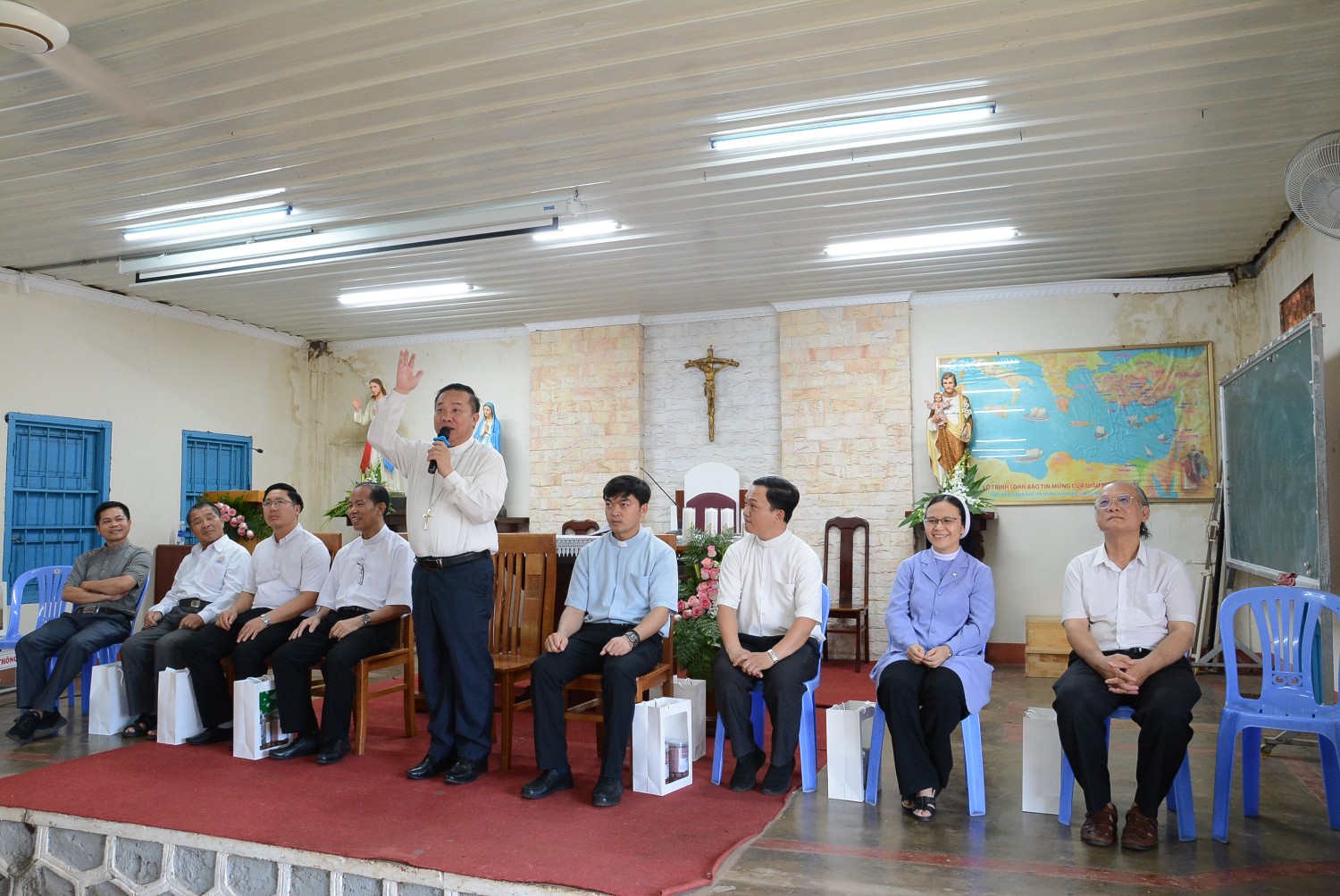 Hiện diện trong ngày trọng đại này có Đức Cha Gioan Baotixita Nguyễn Huy Bắc – Giám mục Giáo phận, Cha Trưởng ban Giáo lý Gioan Baotixita Nguyễn Văn Liêm, hai Cha Phó ban Phêrô Vương Tiên Hoàng và Giuse Đinh Tiến Dương, Cha Thư ký Giuse Nguyễn Công Anh, Cha giáo Phaolô Nguyễn Đình Cương, quý giảng viên, cùng 88 học viên đã hoàn thành khóa học.