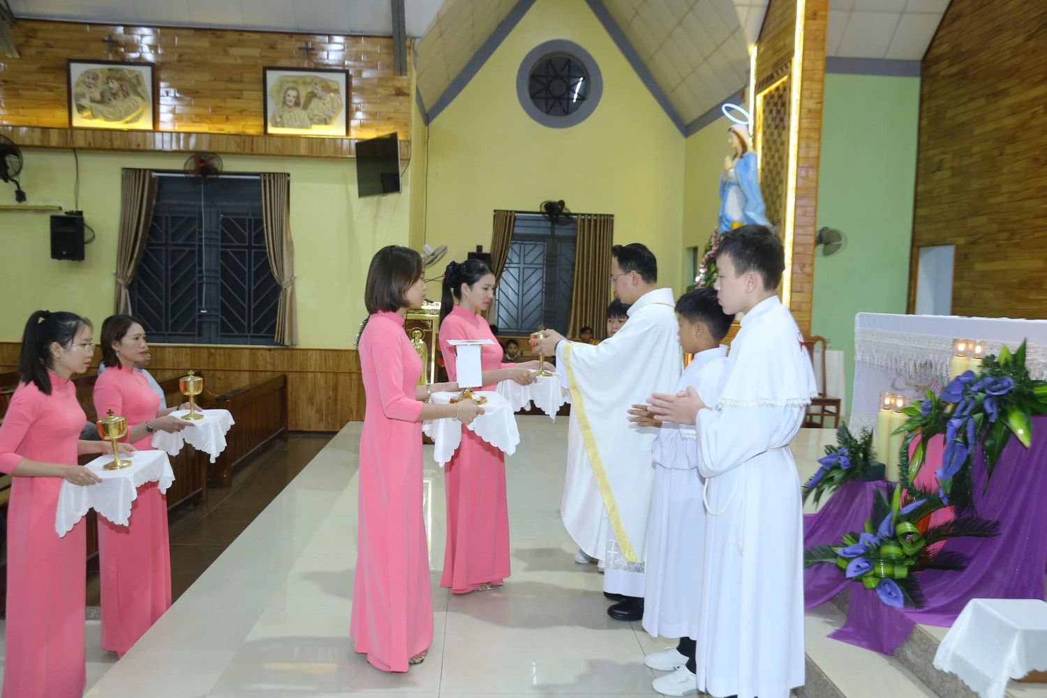 GHTV – Trong tâm tình tạ ơn Thiên Chúa, cùng với Giáo hội Hoàn vũ. Cộng đoàn dân Chúa Giáo họ Trinh Vương hân hoan quy tụ về ngôi thánh đường thân yêu, để long trọng hiệp dâng Thánh lễ, kính trọng thể Đức Maria Vô Nhiễm Nguyên Tội, Bổn mạng Ca đoàn giáo họ, được cử hành lúc 4 giờ 50’ thứ Hai, ngày 8/12/2025, do Cha Quản nhiệm GB. Đinh Văn Mạnh Khương chủ tế.