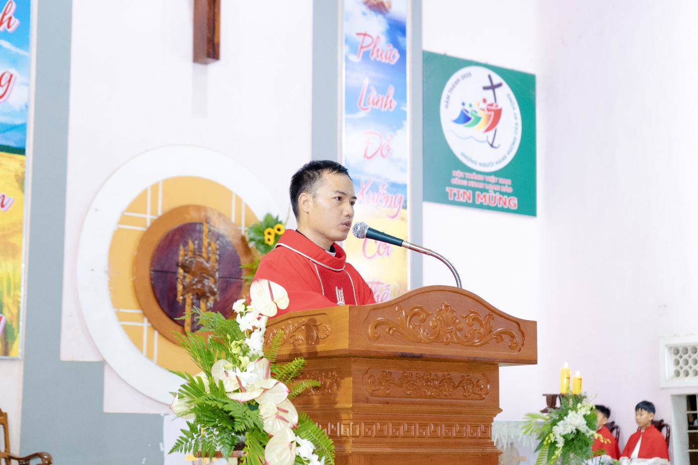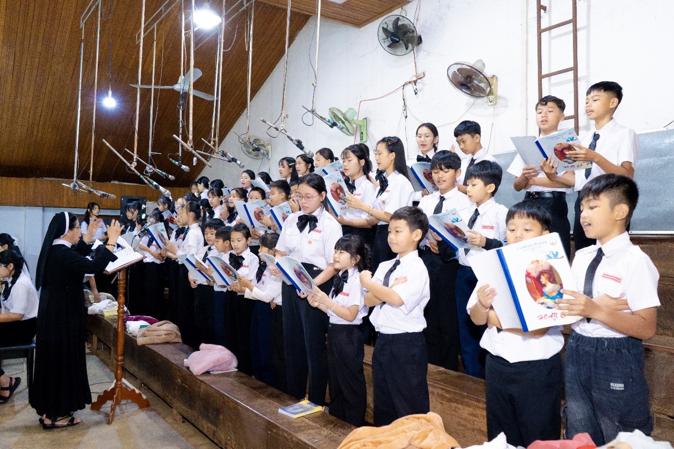 Trong phần chia sẻ Lời Chúa, Cha phó Giuse nhấn mạnh: Hát trong phụng vụ là cầu nguyện. Cha mời gọi các em noi gương Thánh nữ: hát với trái tim yêu mến, tập luyện chăm chỉ, sống hiệp nhất để mỗi bài ca trở thành lời chúc tụng đẹp lòng Thiên Chúa.