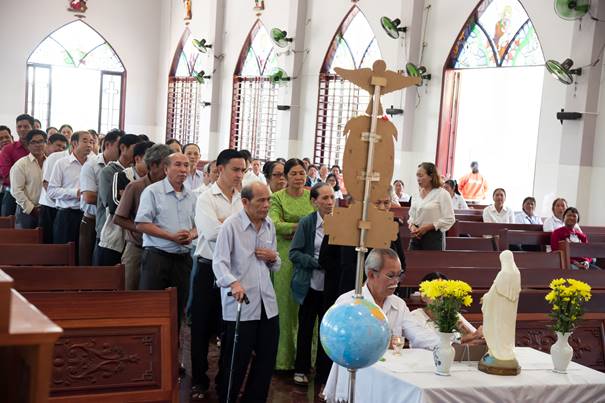 - 09h00: Nghi thức đặc biệt khi Cha Linh giám cùng đoàn thể Hội viên Hoạt động (HVHĐ) và Hội viên Tán trợ (HVTT) xếp hàng lên dâng mình cho Đức Mẹ.