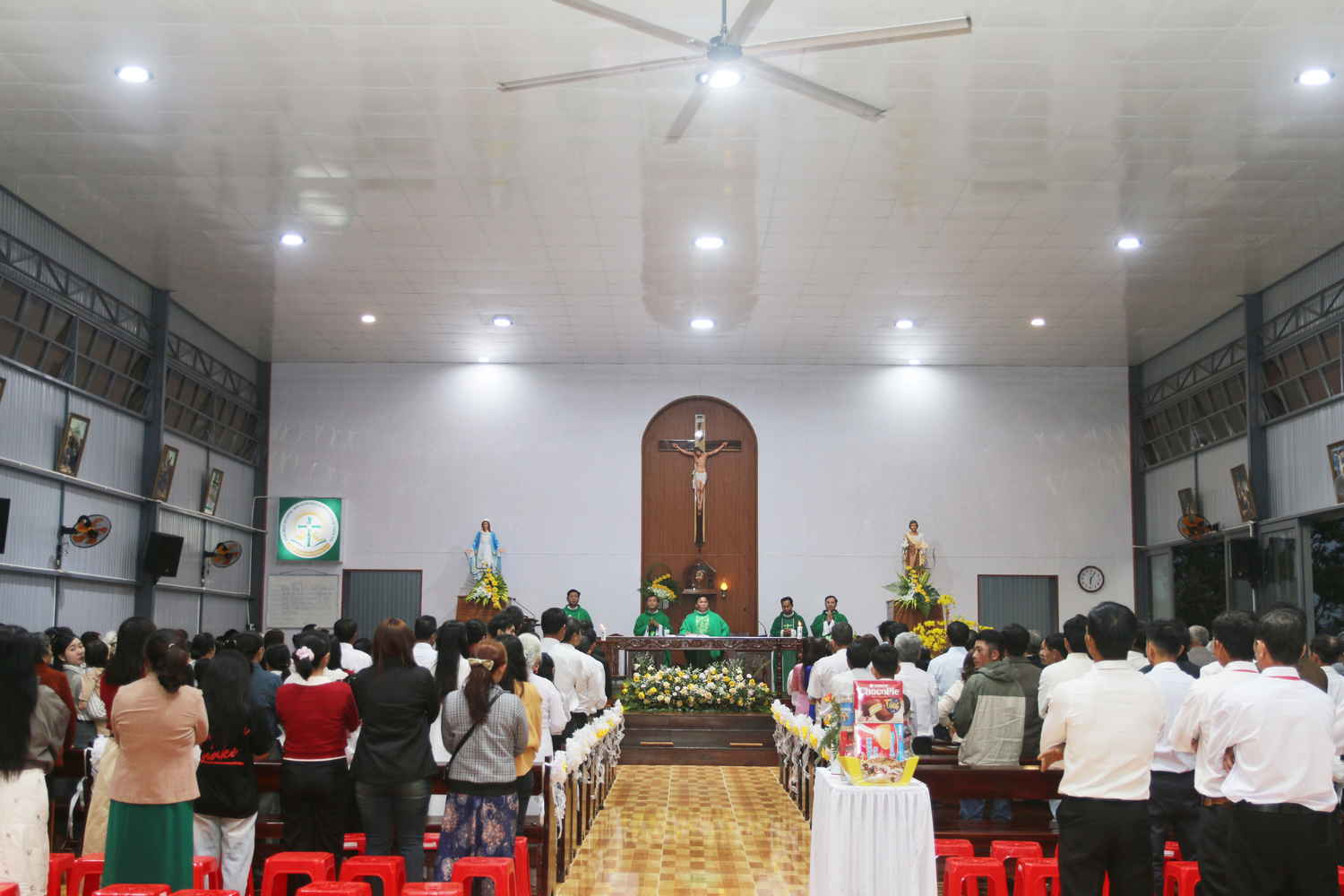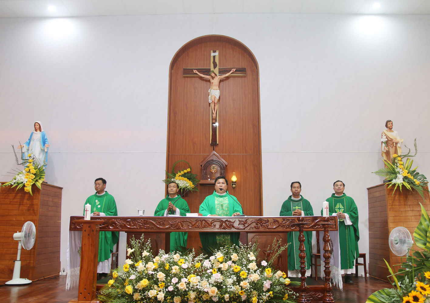 Đồng tế với ngài có quý Cha: Antôn Bùi Văn Minh, Giuse Nguyễn Văn Quang, Gioan Baotixita Phạm Văn Phong, Mathia Trần Văn Lễ và Maria Bonifacio Hồ Văn Năng. Hiệp dâng Thánh lễ có sự hiện diện của Ban Thường vụ Hội đồng Giáo xứ, Ban Hành giáo các giáo họ, đại diện các hội đoàn, quý Sơ cùng đông đảo cộng đoàn dân Chúa.