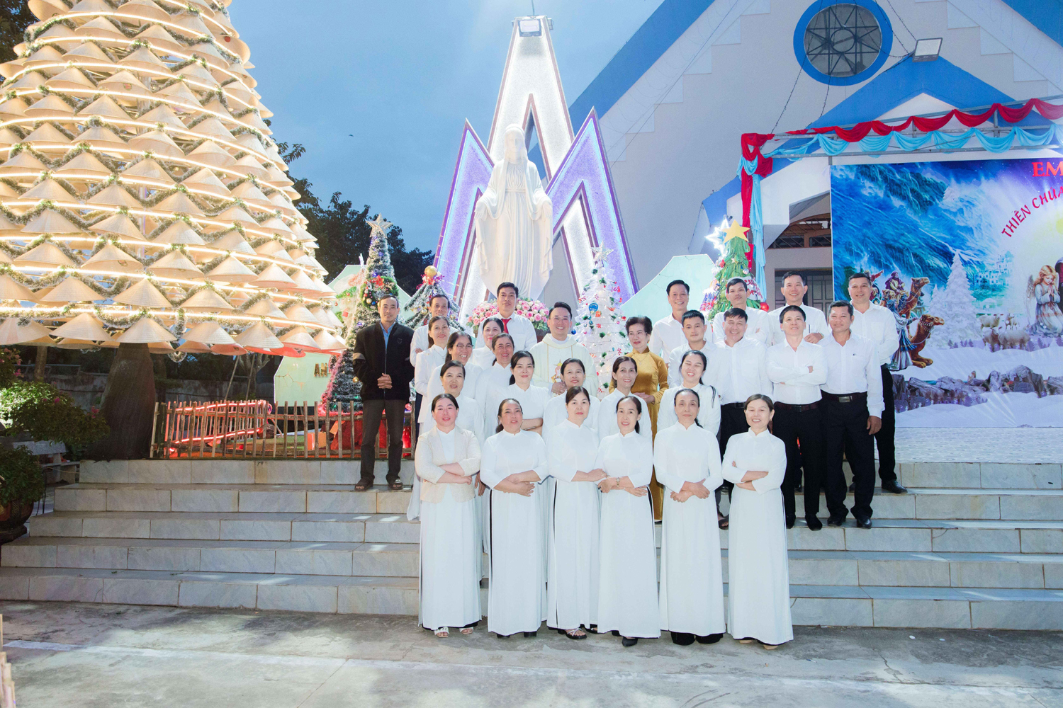Sau cùng, cha chụp hình lưu niệm với Ban Hành giáo và Ca đoàn trước các Hang đá trong cũng như ngoài Nhà thờ.