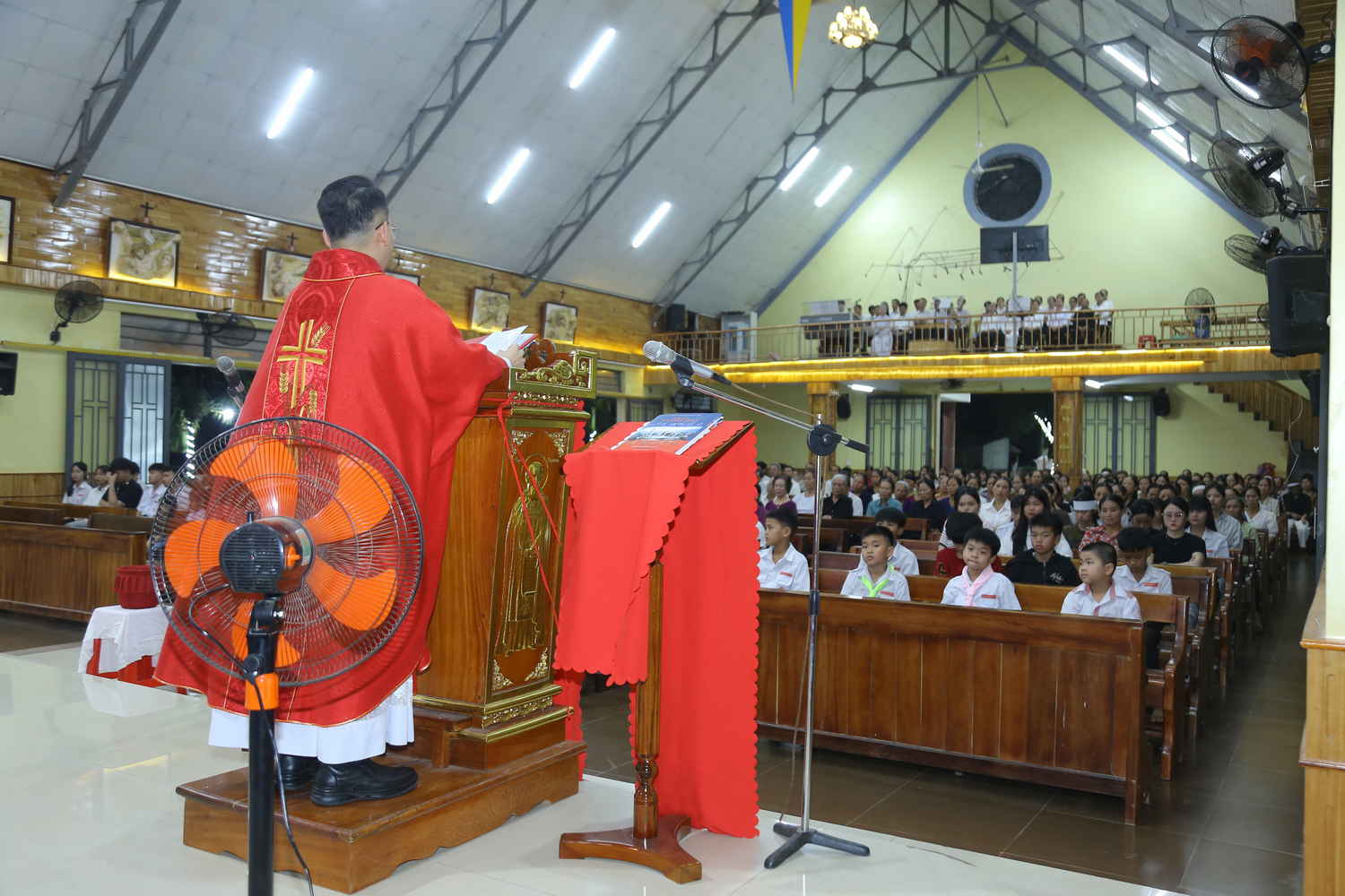 Trong phần giảng lễ, Cha chủ tế chia sẻ: “Ngày hôm nay được gọi là ngày thinh lặng thánh, hay gọi là ngày của tình yêu tột đỉnh, bằng cài chết của Chúa Giê-su trên thập giá…..Trên thập giá, Chúa Giê-su không chỉ đau khổ về mặt thân xác, nhưng Ngài còn gánh lấy tôi lỗi của toàn thể nhân loại để đưa lên cây thập giá. Dù cho Ngài bị phản bội, bị từ chối, bị kết án bất công. Nhưng điều đáng suy ngẫm nhất cho mỗi người chúng ta, không phải là nỗi đau, mà chính là tình yêu của Ngài. Bời vì, không có tình yêu nào lớn hơn tình yêu của người bạn hữu, hiến dâng vì bạn hữu mình.. Thập giá chính là sự chiến thắng của tình yêu trước hận thù, của sự sống trước sự chết….Giữa đau khổ tột cùng, Chúa Giê-su vẫn tín thác vào Chúa Cha. Thập giá dạy chúng ta rằng, không phải mọi đau khổ đều vô ích khi chúng ta biết kết hợp với Chúa. Thì đau khổ sẽ trở nên con đường cứu độ.”