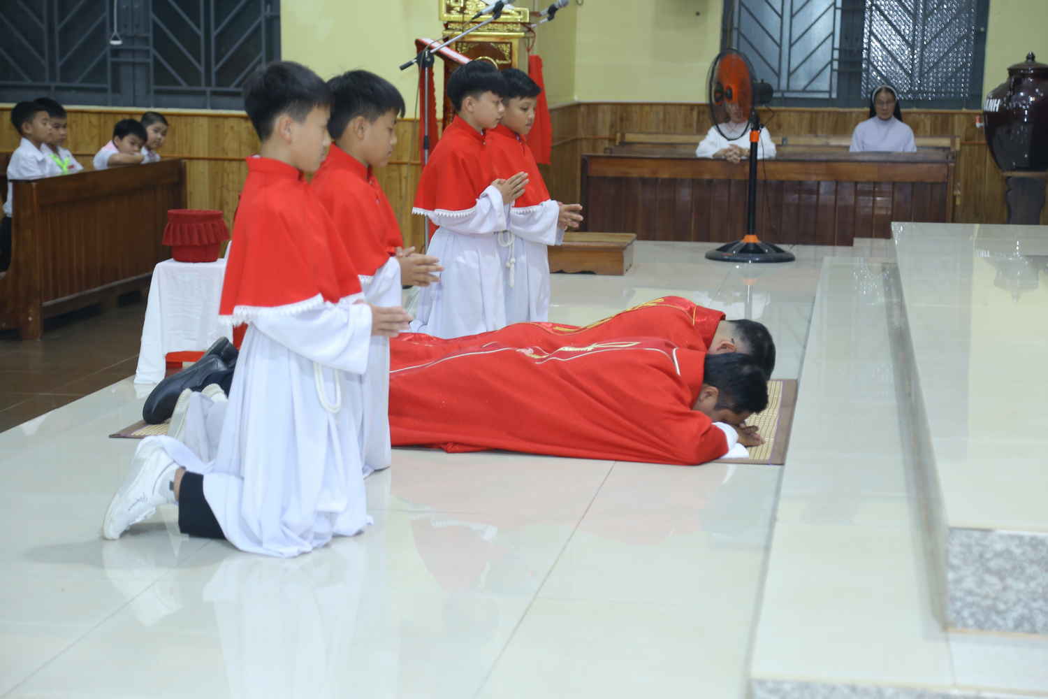 Nghi thức được bắt đầu với việc quý Cha tiến ra cung thánh, phủ phục trước bàn thờ và cộng đoàn quỳ gối hợp cùng quý Cha, nhìn lại sự yếu đuối và thân phận tội lỗi – nguyên nhân dẫn đến cuộc khổ nạn của Chúa. Sau đó, Cha chủ tế quay về phía cộng đoàn giang tay dâng lời nguyện để bước vào Phụng vụ Lời Chúa.