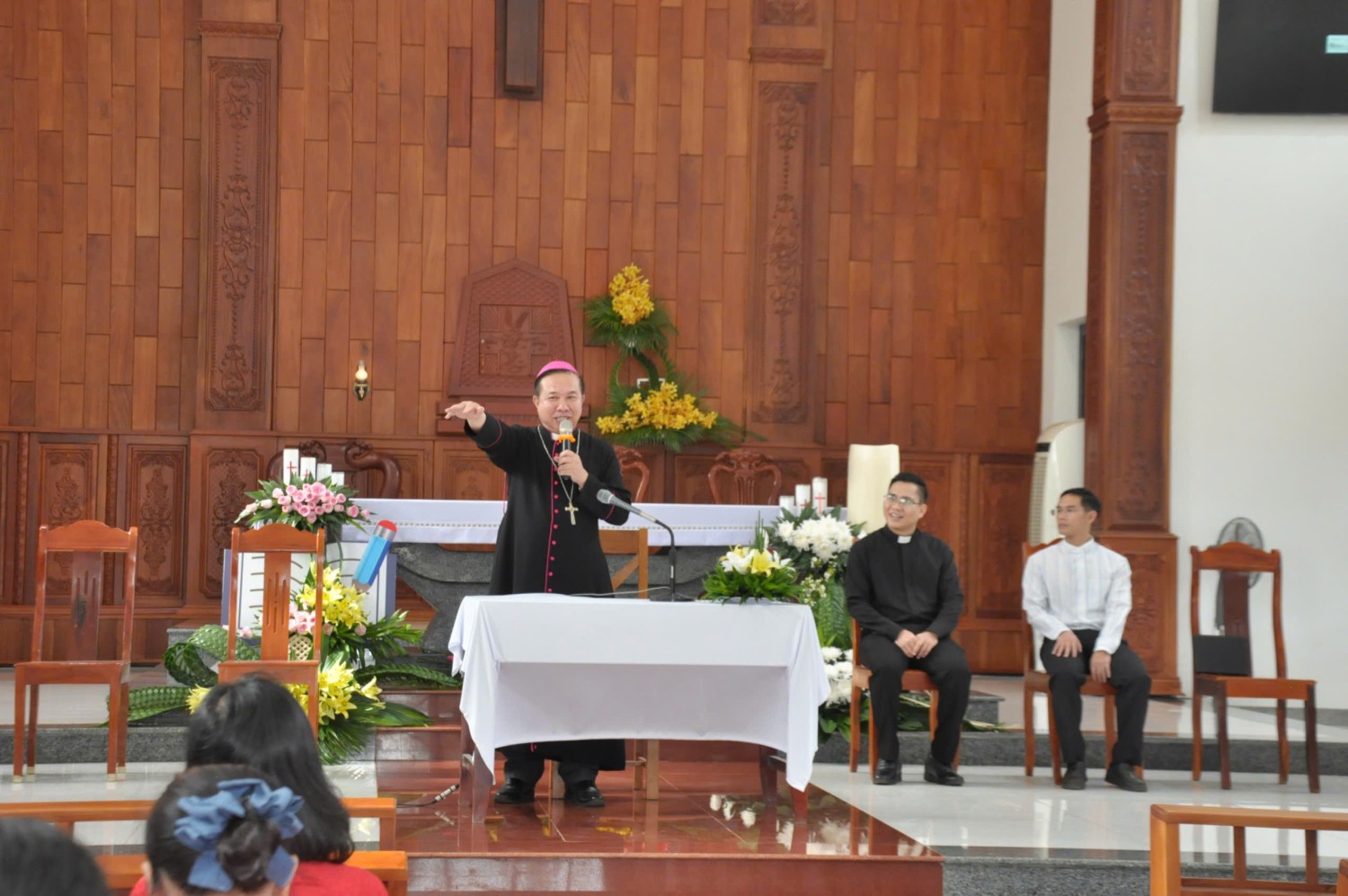 Đức Cha đã nêu lại hai câu hỏi mà cách đây 20 năm ngài đã đặt ra cho Giáo viên khi ngài còn là Cha Quản xứ Giáo xứ Phước Long: Chúng ta là kho tàng chất xám vô giá của Mẹ Giáo hội, tôi đã làm được gì cho Mẹ Hội thánh? và tôi sẽ làm gì cho Mẹ Hội thánh? “.