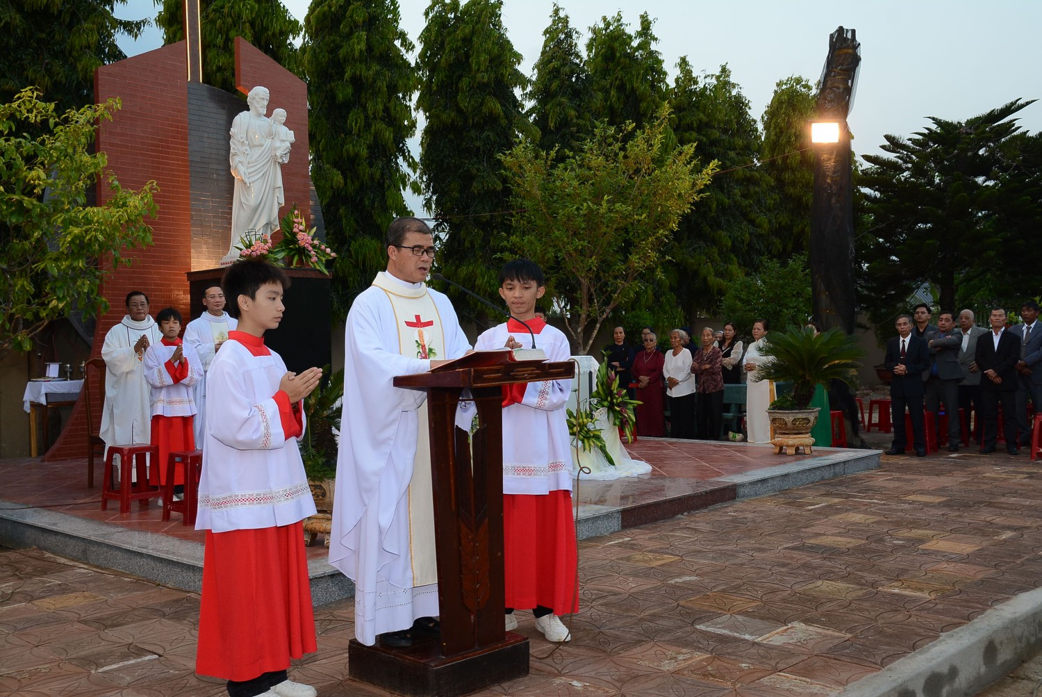 Thánh lễ do Cha Quản hạt Giuse Đỗ Minh Hiển chủ sự. Đồng tế với ngài có Cha Quản xứ Phêrô Bùi Hãnh Diễn và Cha Phaolô Tịnh (Đan viện Thiên Tịnh), cùng sự hiện diện sốt sắng và đông đảo của cộng đoàn dân Chúa trong và ngoài giáo xứ.