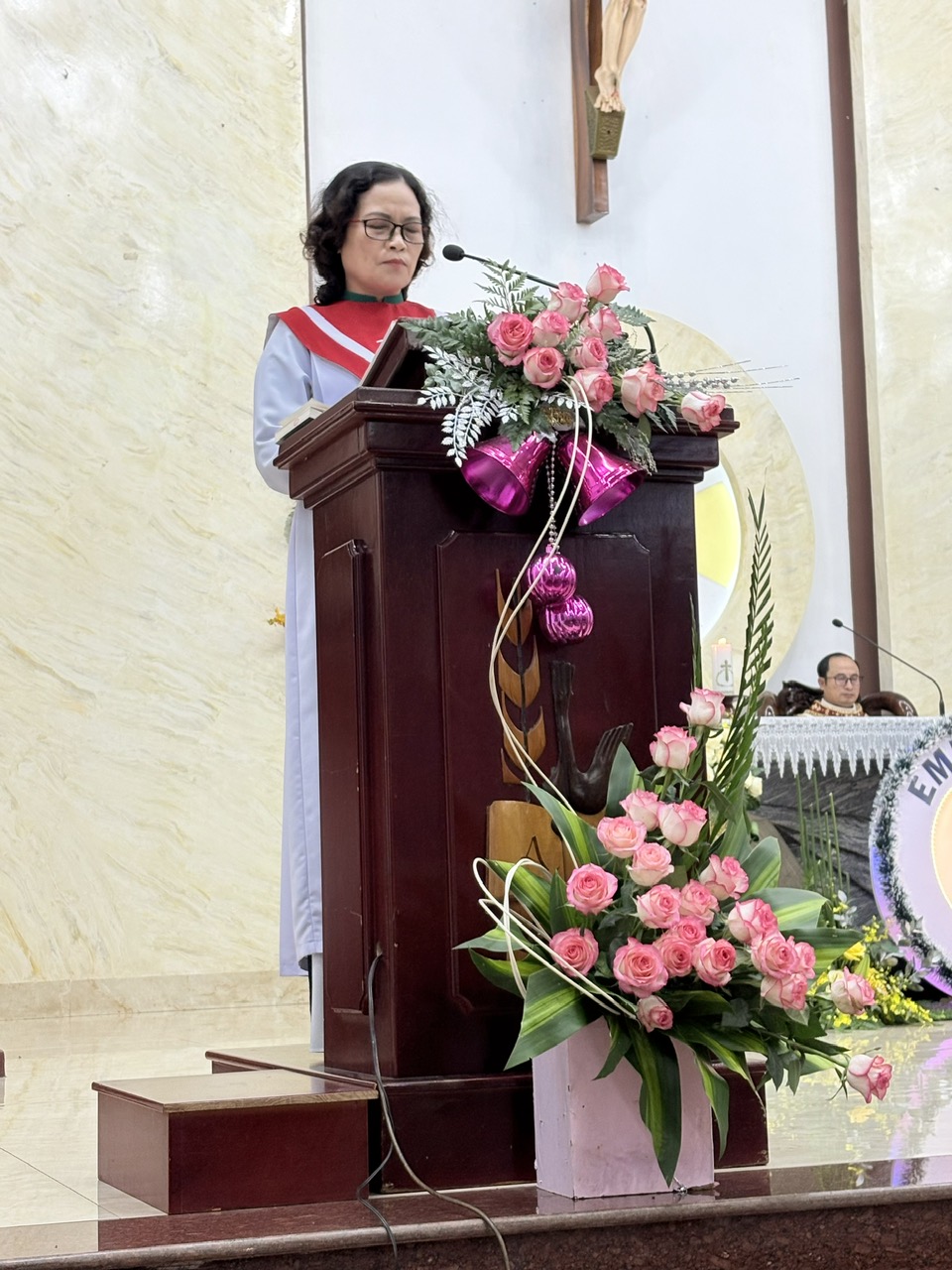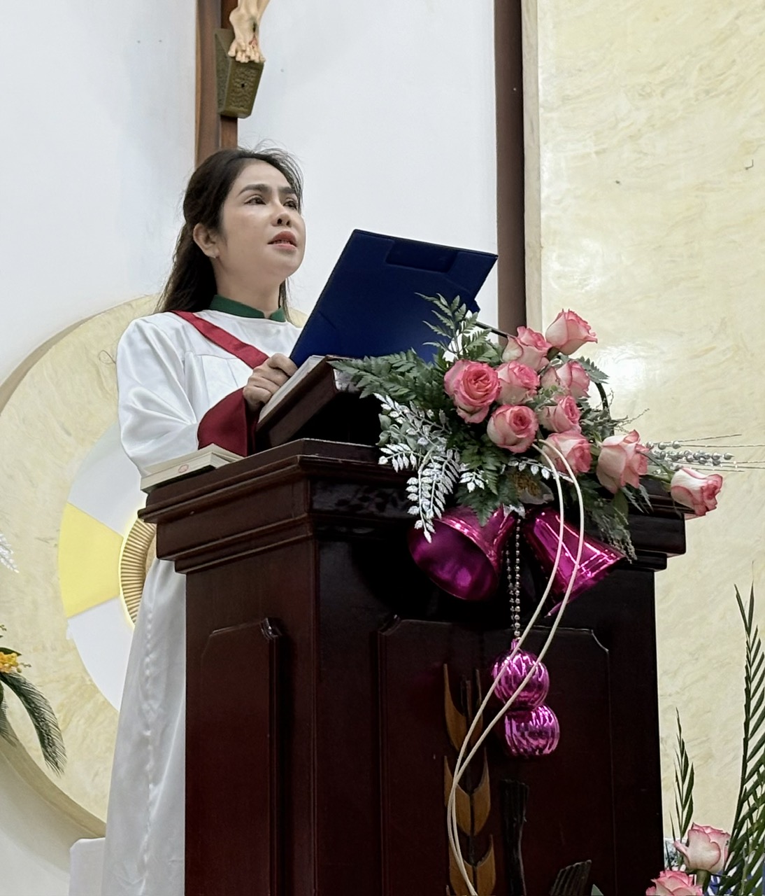 Thánh lễ tiếp tục trong bầu khí trang nghiêm, sốt sắng và tràn đầy tâm tình tạ ơn. Cuối Thánh lễ, chị Trưởng Ca đoàn thay mặt Ca đoàn Thánh Gia dâng lời tri ân cha quản xứ, quý ban ngành và toàn thể cộng đoàn đã luôn yêu thương, nâng đỡ và hiệp thông cầu nguyện cho Ca đoàn.