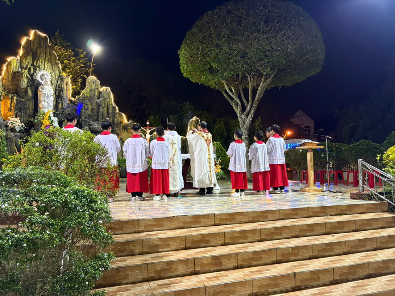 Giáo xứ Kim Mai long trọng cử hành Thánh lễ kính Đức Maria Vô Nhiễm Nguyên Tội tại Đài Đức Mẹ của Giáo xứ.