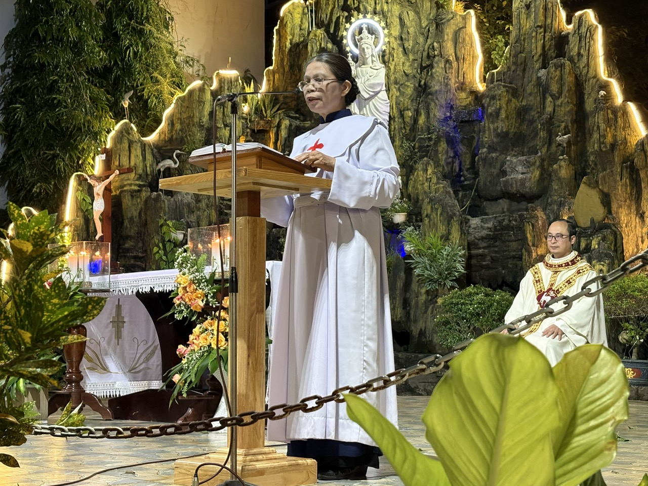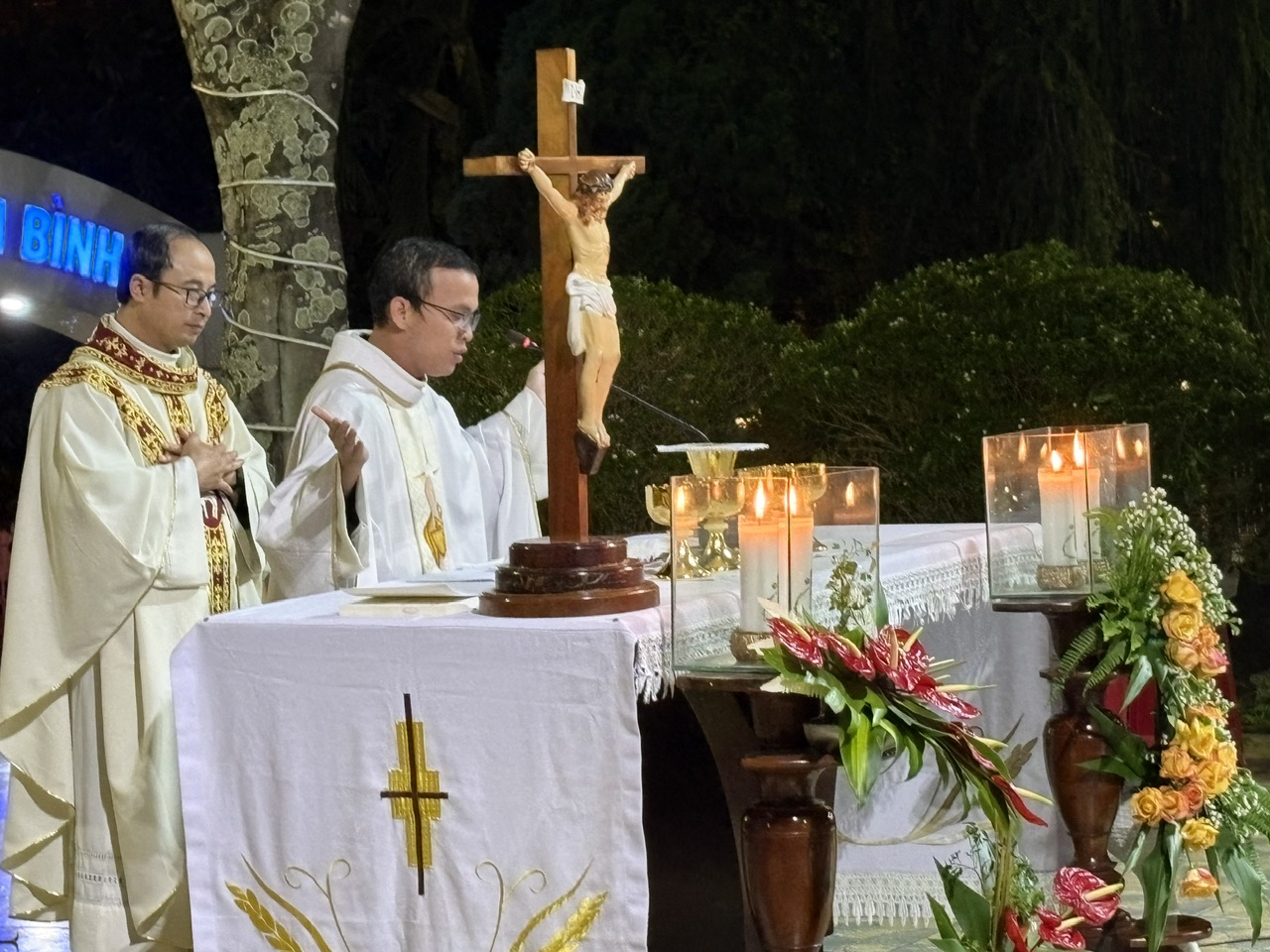 Thánh lễ do Cha Quản xứ TôMa Aquinô chủ tế; cùng đồng tế với ngài có Cha phó Antôn, quý Tu sĩ và đông đảo cộng đoàn dân Chúa hiệp dâng trong bầu khí trang nghiêm và sốt sắng.
