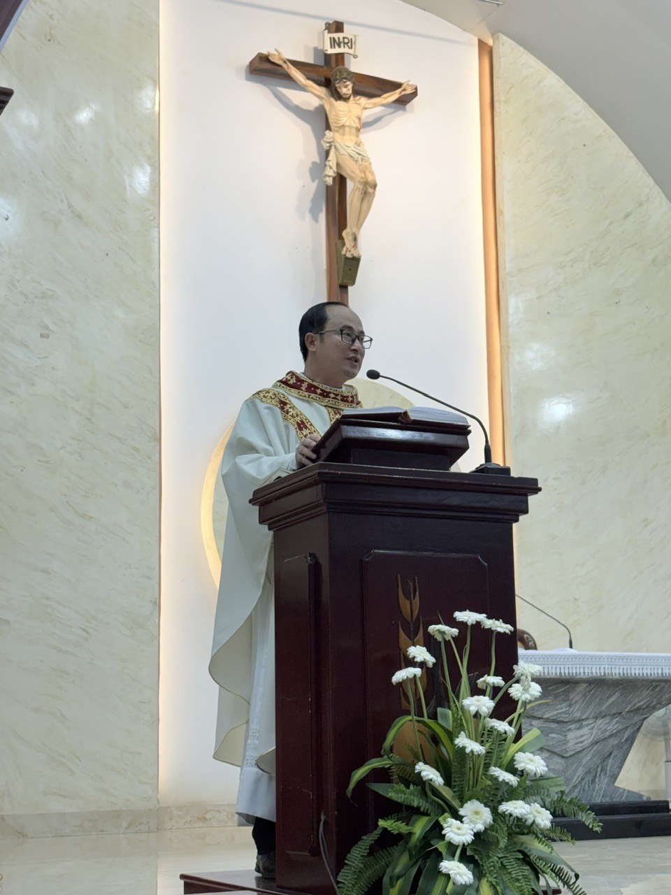 Trong bài giảng, Cha Quản xứ Tôma Aquinô đã nhắc lại ba từ khóa trong tam nhật Thánh đó là: