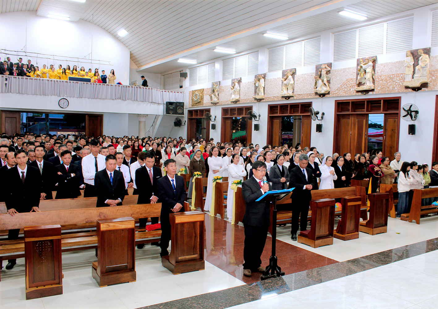 Thánh lễ diễn ra trang nghiêm và sốt sắng, có các Cha đồng tế.