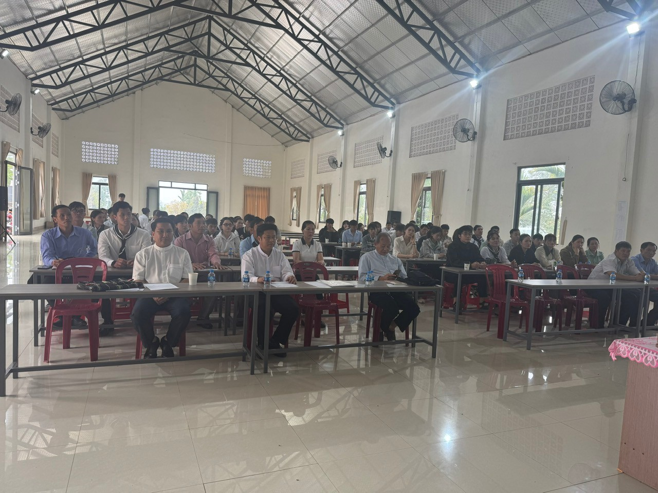 Hiện diện trong buổi lễ khai giảng có Cha trưởng Ban Giáo lý giáo hạt, Cha quản nhiệm Giáo họ Hương Sơn, quý Cha trong Ban Giáo lý Giáo hạt, quý Cha giáo của lớp học cùng đông đảo anh chị em giáo lý viên đến từ các giáo xứ trong cụm Đak Song Giáo hạt Gia Nghĩa.