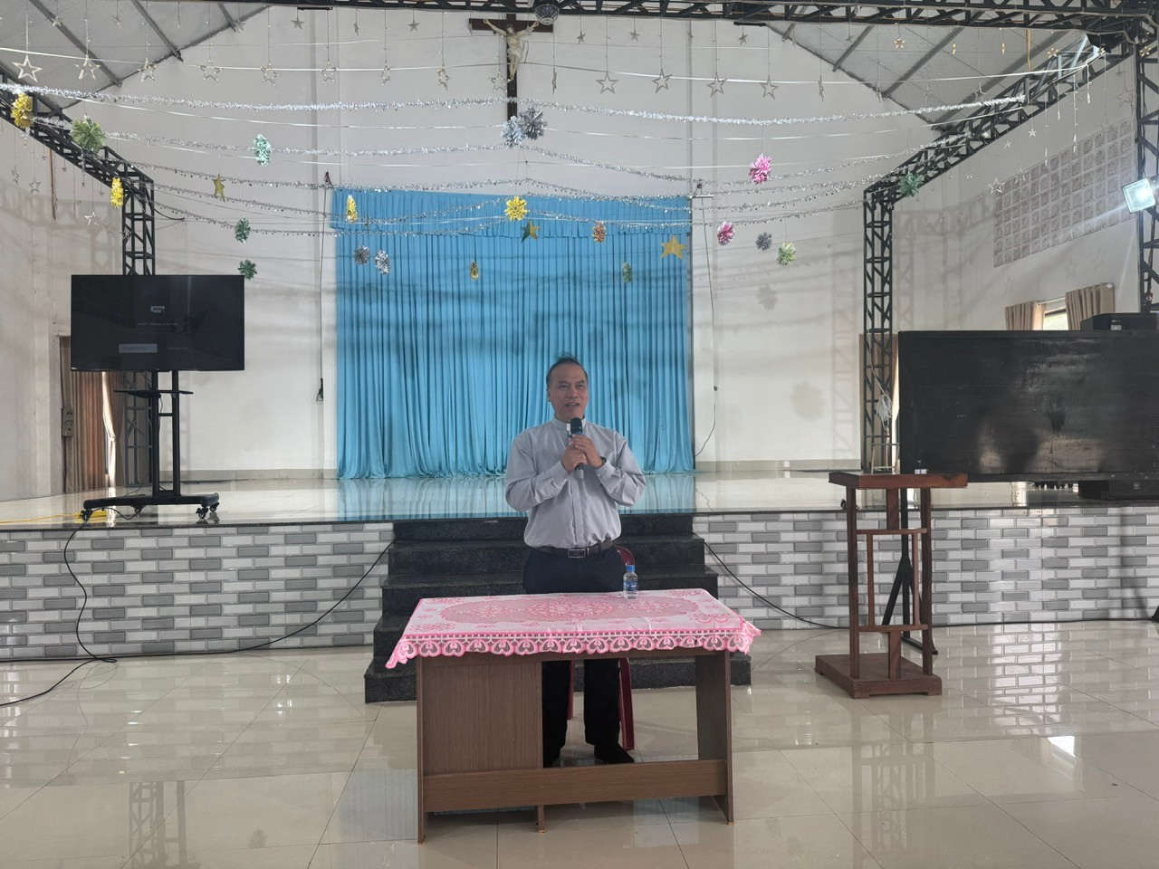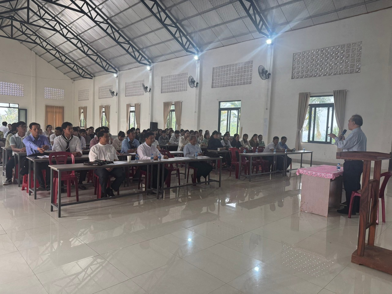 Sau phần giới thiệu thành phần tham dự, Cha Trưởng ban Giáo lý công bố lý do khai giảng và giới thiệu quý Cha giảng huấn đồng hành trong khóa học, đồng thời ngài cũng gởi lời cảm ơn đến quý Cha giáo, quý Srs cùng tất cả những người đã và sẽ đồng hành giúp đỡ để lớp học được diễn ra tốt đẹp trong thánh ý Chúa.