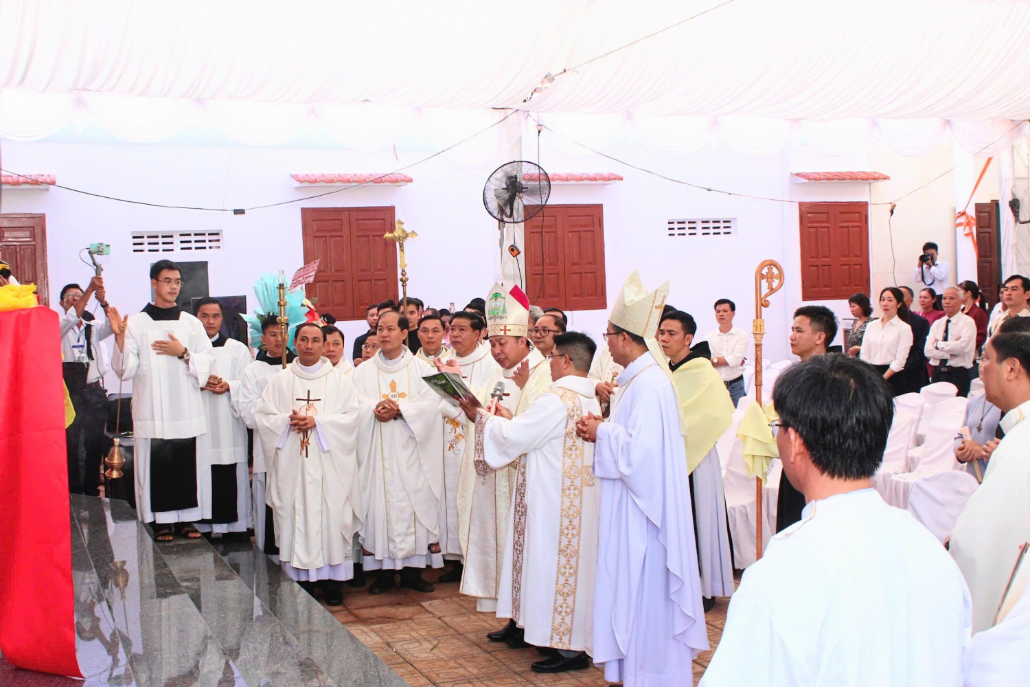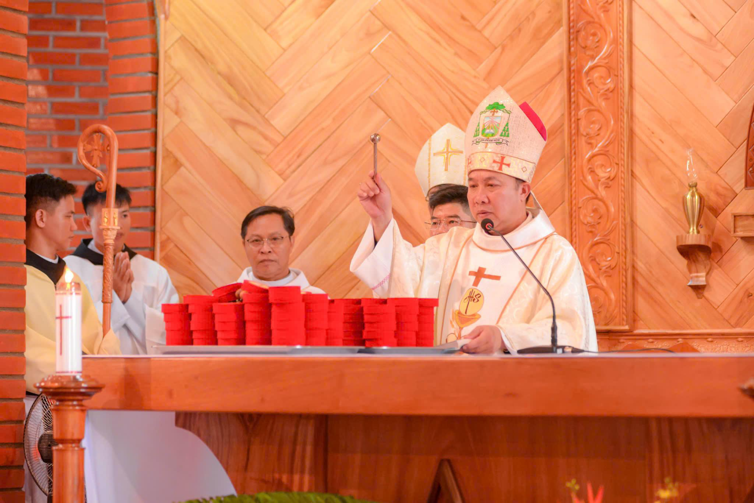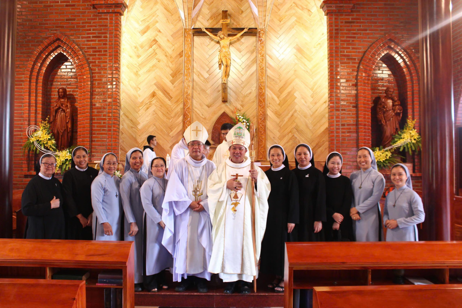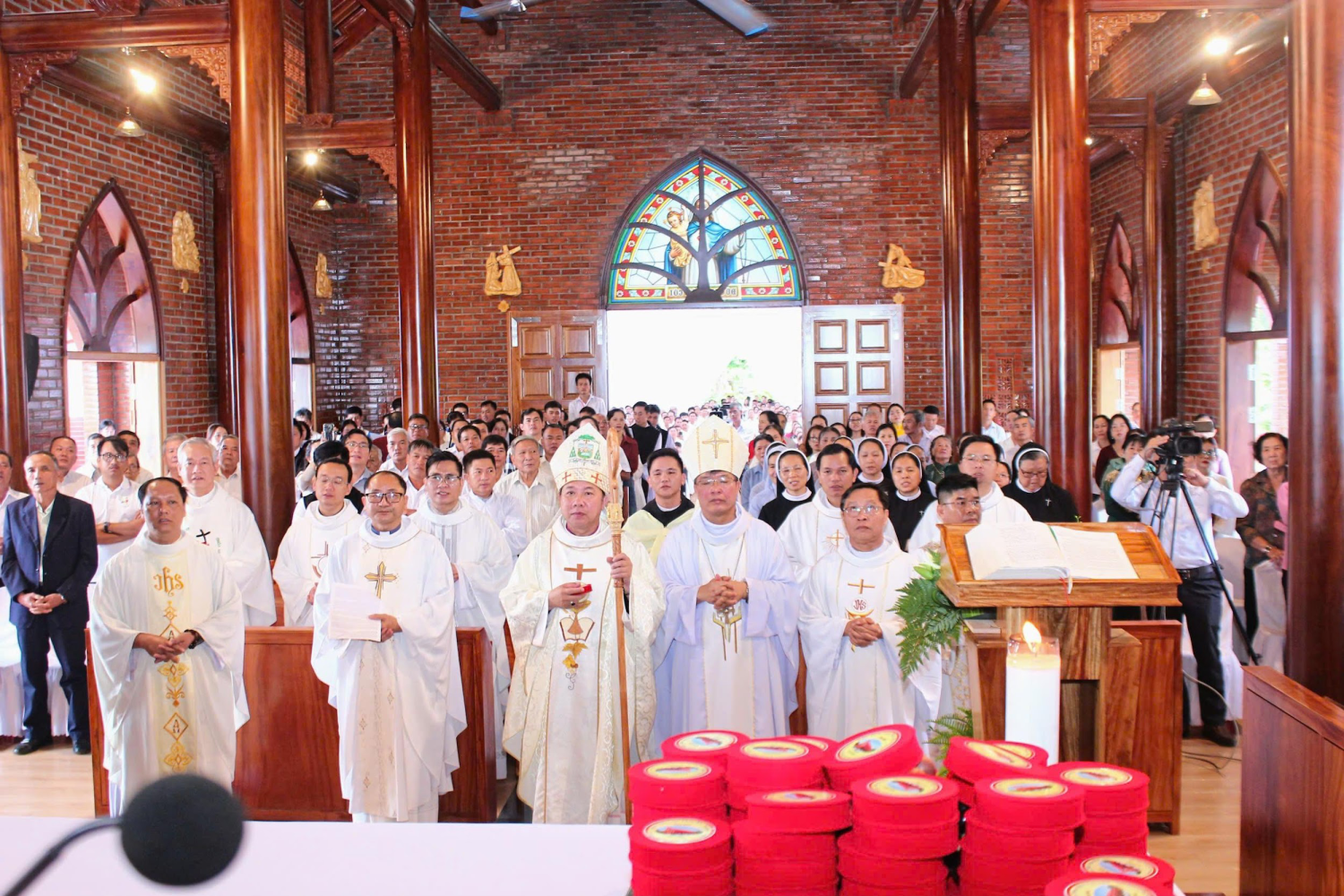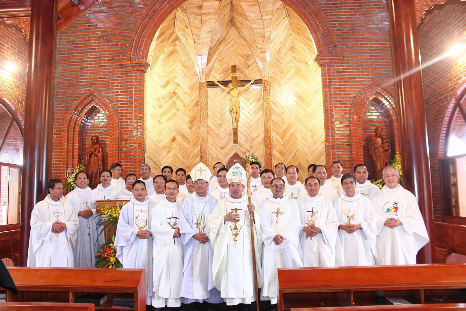 Thánh lễ tạ ơn hôm nay do Đức Cha Gioan Baotixita Nguyễn Huy Bắc chủ sự. Đồng tế với ngài có Đức viện phụ Fr.M.Phêrô Khoa Nguyễn Thái Bình, quý Cha Quản hạt Phước Long – Đồng Xoài cùng một số quý Cha trong và ngoài Giáo hạt Phước Long.