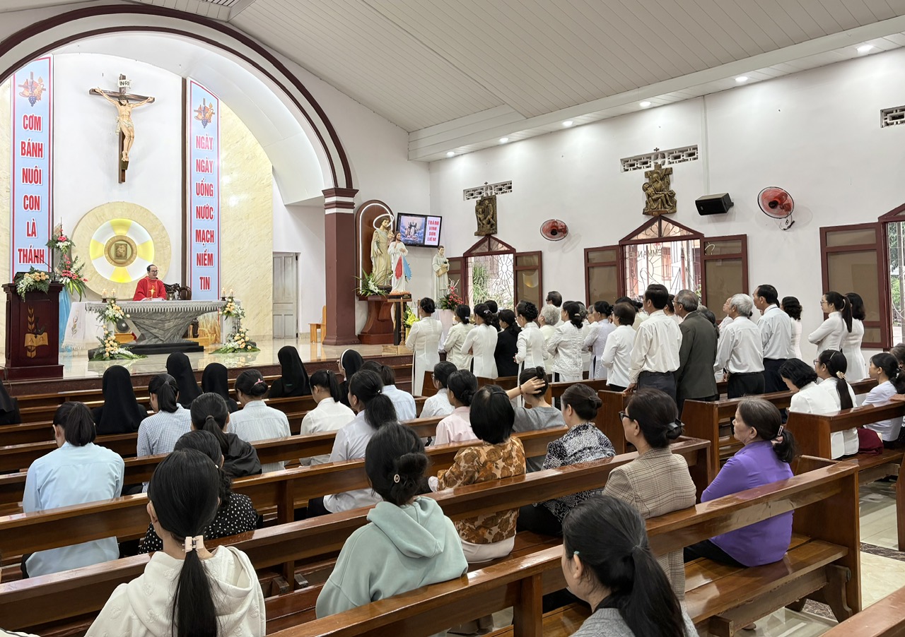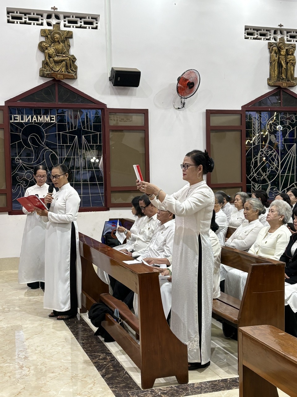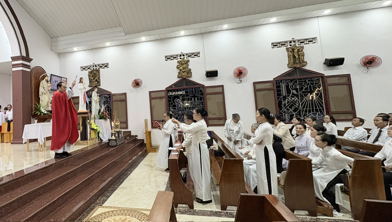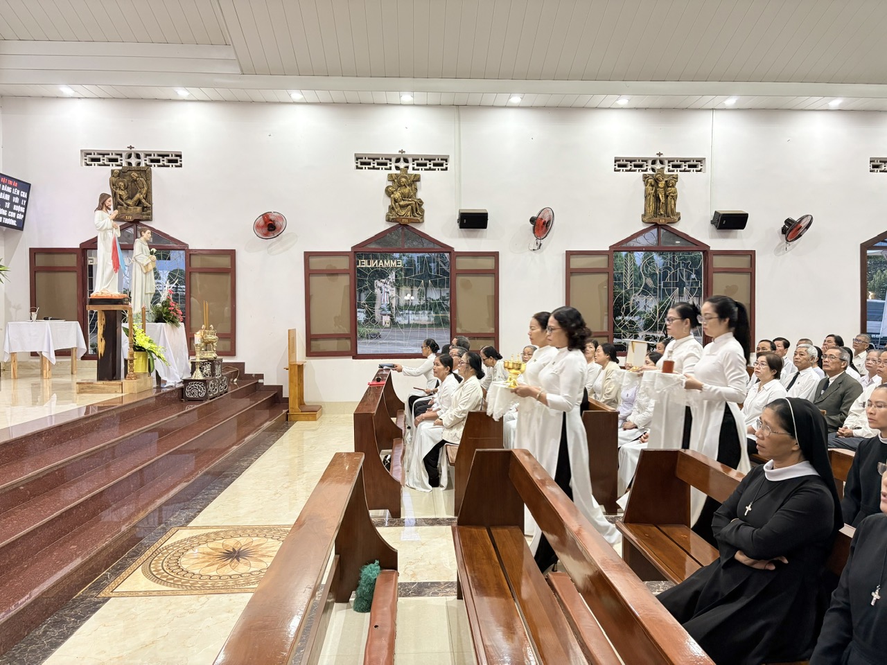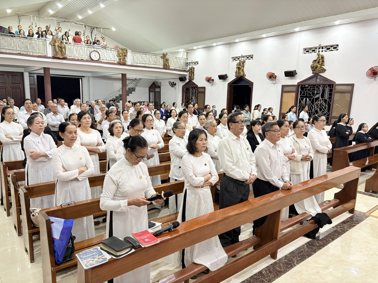 Thánh lễ do cha Quản xứ Tôma Aquinô chủ sự, cùng sự hiện diện của quý Soeur, đông đảo các hội viên Huynh đoàn và cộng đoàn dân Chúa, làm cho ngày lễ trở nên thật trang nghiêm.