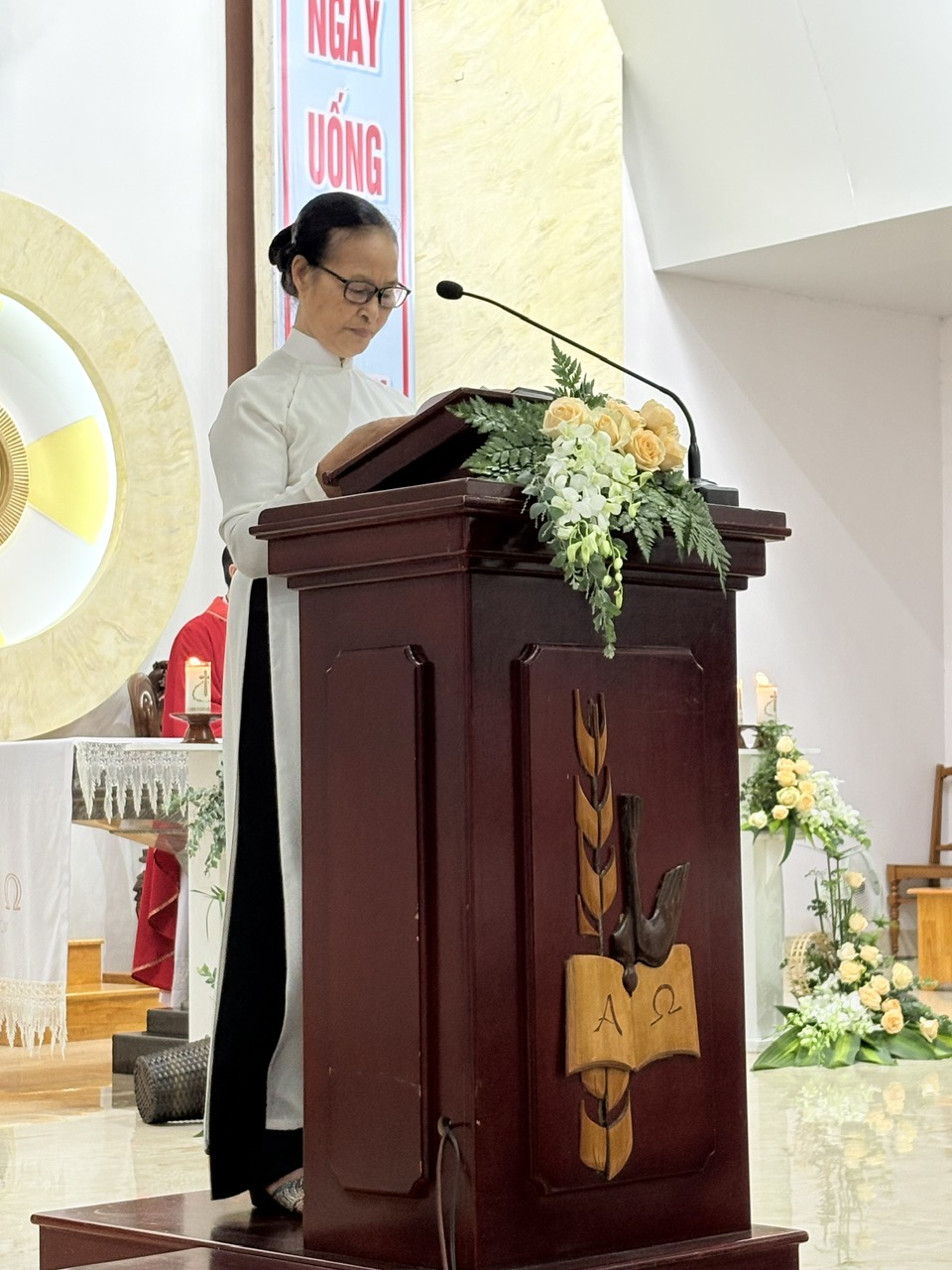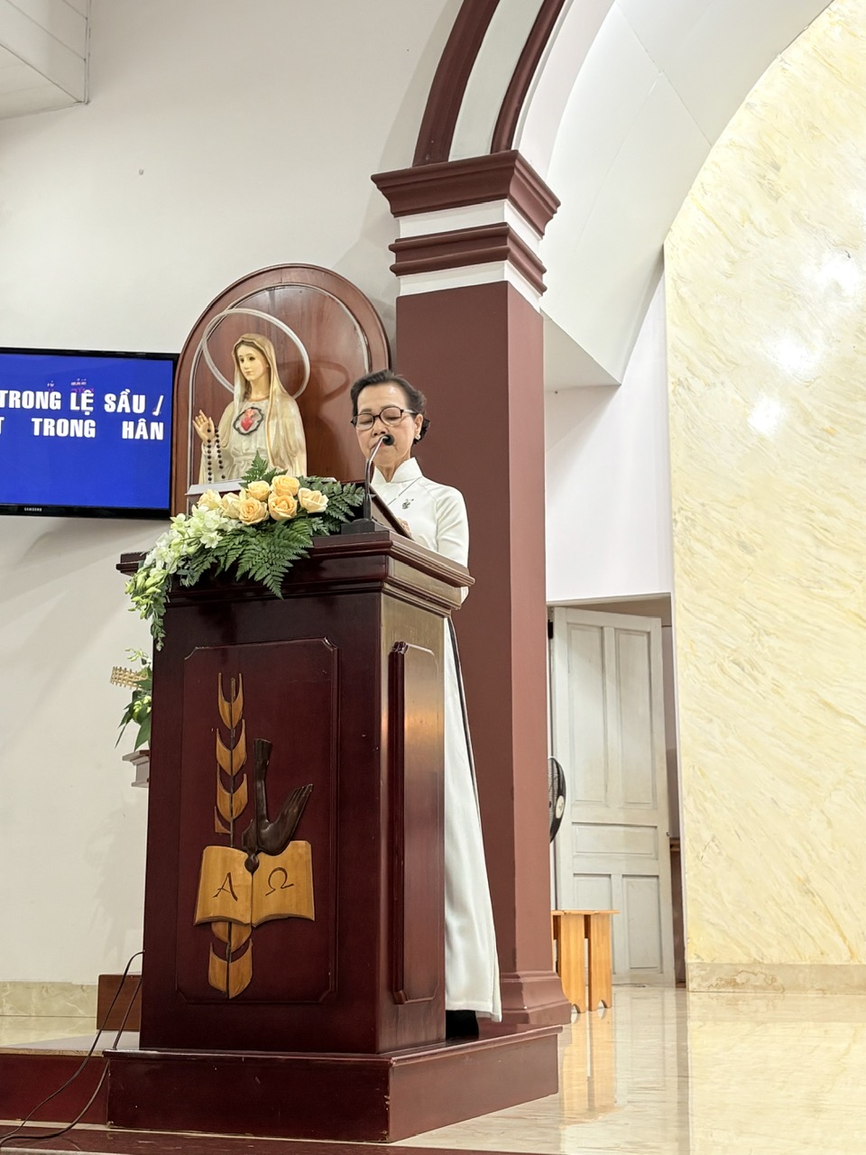 Cuối lễ, chị Trưởng Huynh đoàn đại diện dâng lời tri ân quý Cha, quý Soeurs và toàn thể cộng đoàn.
