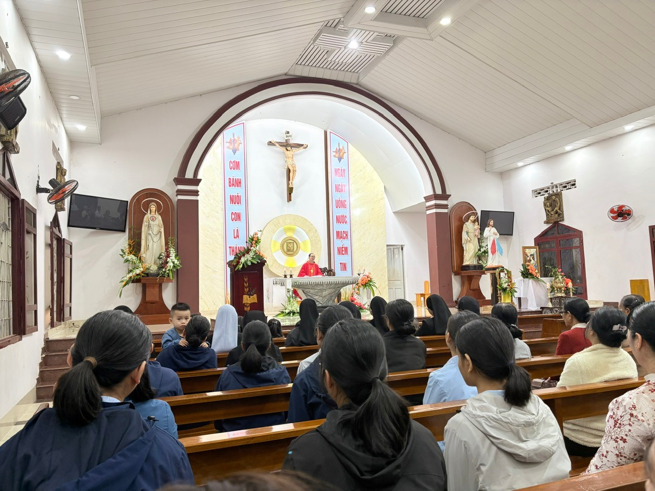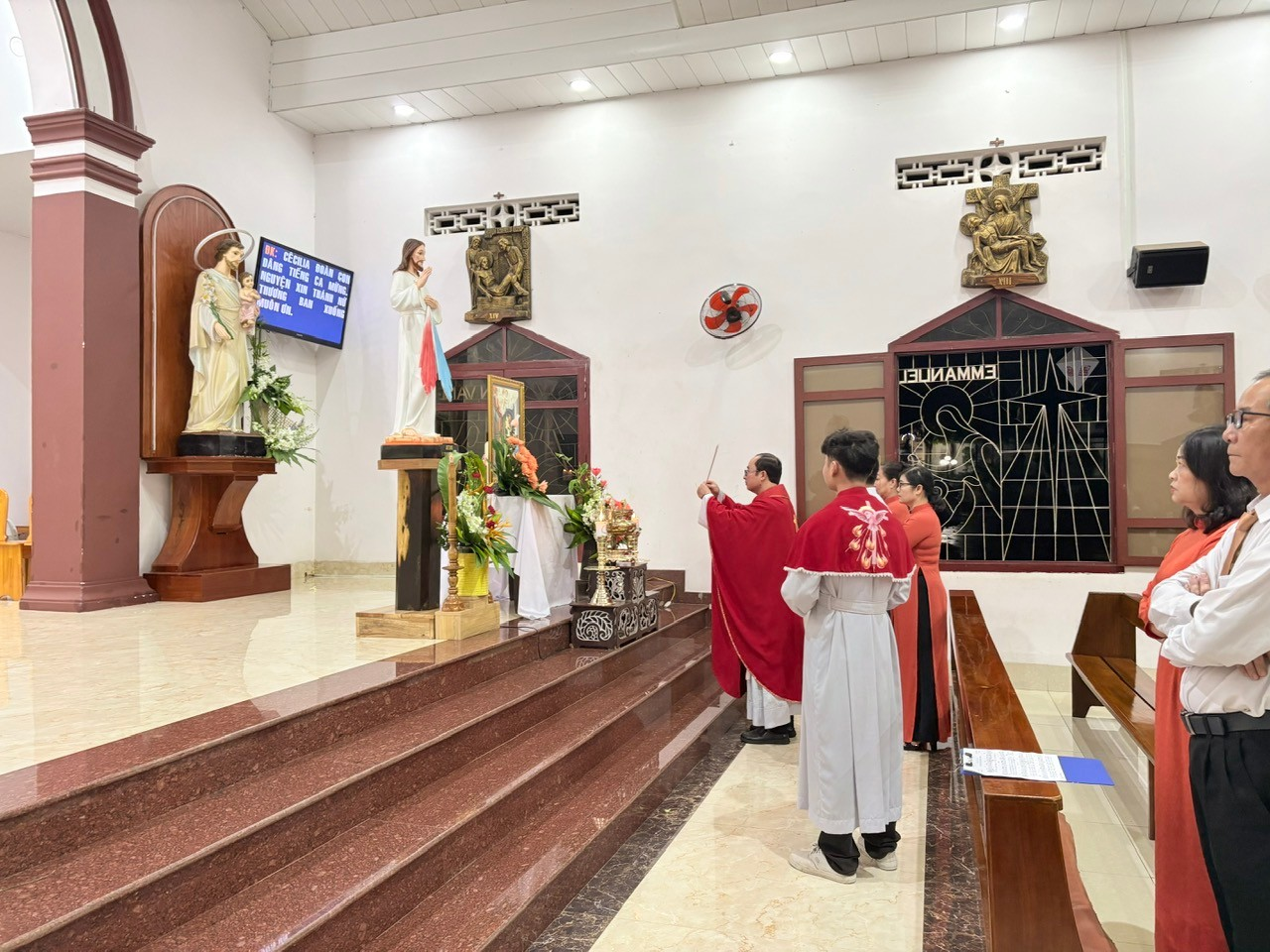 Sáng ngày 22/11/2025, vào lúc 5g00 tại Thánh đường Giáo xứ Kim Mai, Thánh lễ được cử hành trọng thể do Cha Quản xứ Tôma Aquinô chủ tế, với sự hiện diện của quý Soeurs, quý chức Hội đồng Mục vụ Giáo xứ, các ca viên cùng đông đảo cộng đoàn dân Chúa.