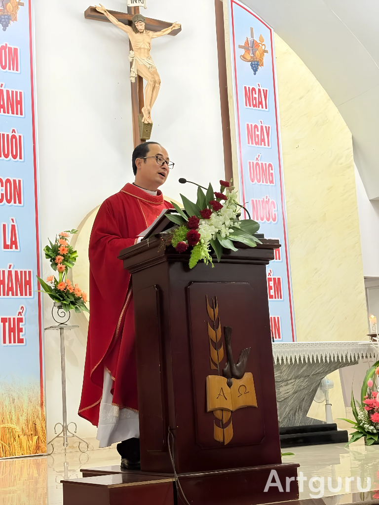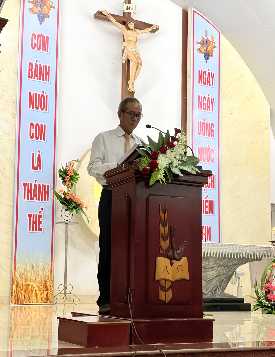 Trong bài chia sẻ Lời Chúa, Cha Quản xứ Tôma Aquinô gợi lại đời sống thánh thiện của Thánh nữ Cecilia – người đã sống trọn vẹn niềm tin và tình yêu dành cho Thiên Chúa. Ngài nhắc nhớ cộng đoàn về sự sống đời sau: chúng ta không chỉ dừng lại ở những thú vui của đời sống hiện tại, nhưng phải biết chuẩn bị cho cuộc sống vĩnh cửu. Thánh nữ Cecilia đã mạnh mẽ tuyên xưng Đức tin, cảm hóa người chồng ngoại giáo trở lại với Kitô giáo, và can đảm đối diện mọi thử thách để bảo vệ niềm tin của mình.