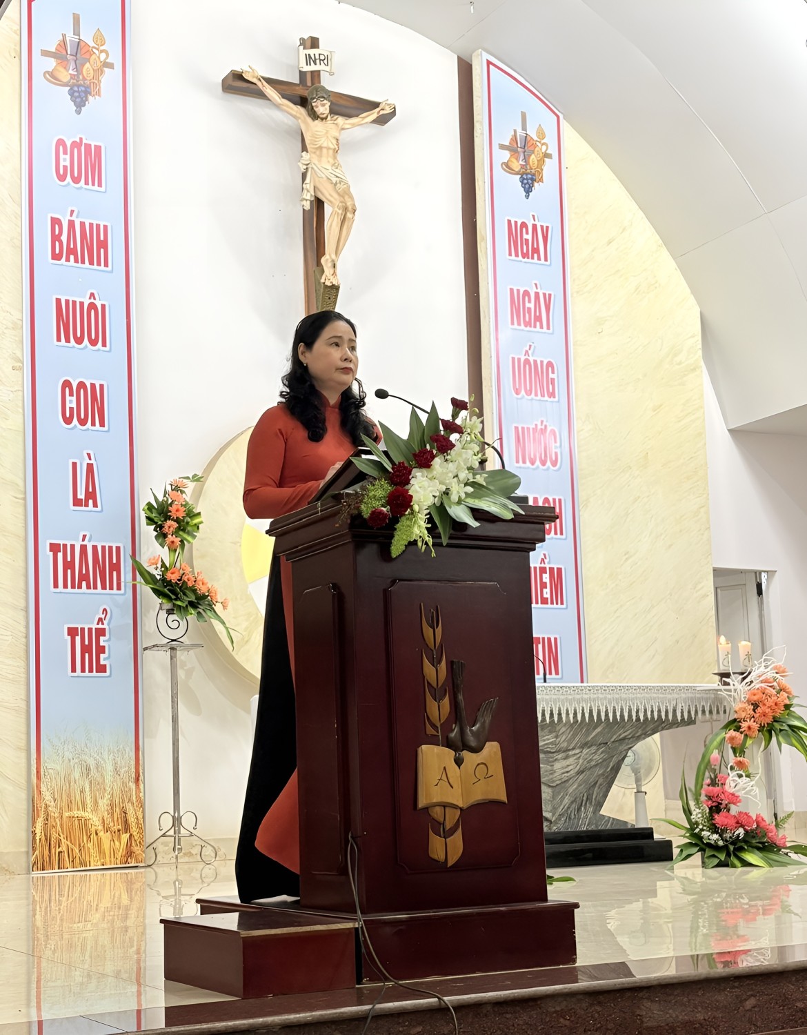 Trước khi kết thúc Thánh lễ, đại diện Ca đoàn Cecilia dâng lời tri ân Cha Quản xứ, quý Soeurs, quý ân nhân, quý Hội đồng Mục vụ Giáo xứ, các hội đoàn trong và ngoài Giáo xứ cùng toàn thể cộng đoàn đã luôn đồng hành và nâng đỡ ca đoàn.