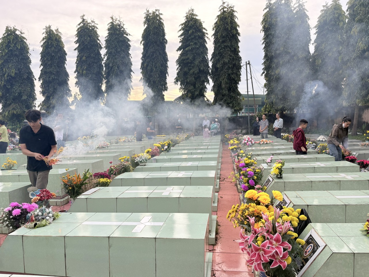 Sau Thánh lễ, cộng đoàn cùng nhau tỏa đi viếng mộ phần của gia tộc mình. Những nén hương trầm nghi ngút, những nhành hoa tươi được đặt lên phần mộ như lời nhắn gửi yêu thương: “Chúng con luôn nhớ đến cha mẹ, ông bà và người thân trong lời cầu nguyện mỗi ngày.”