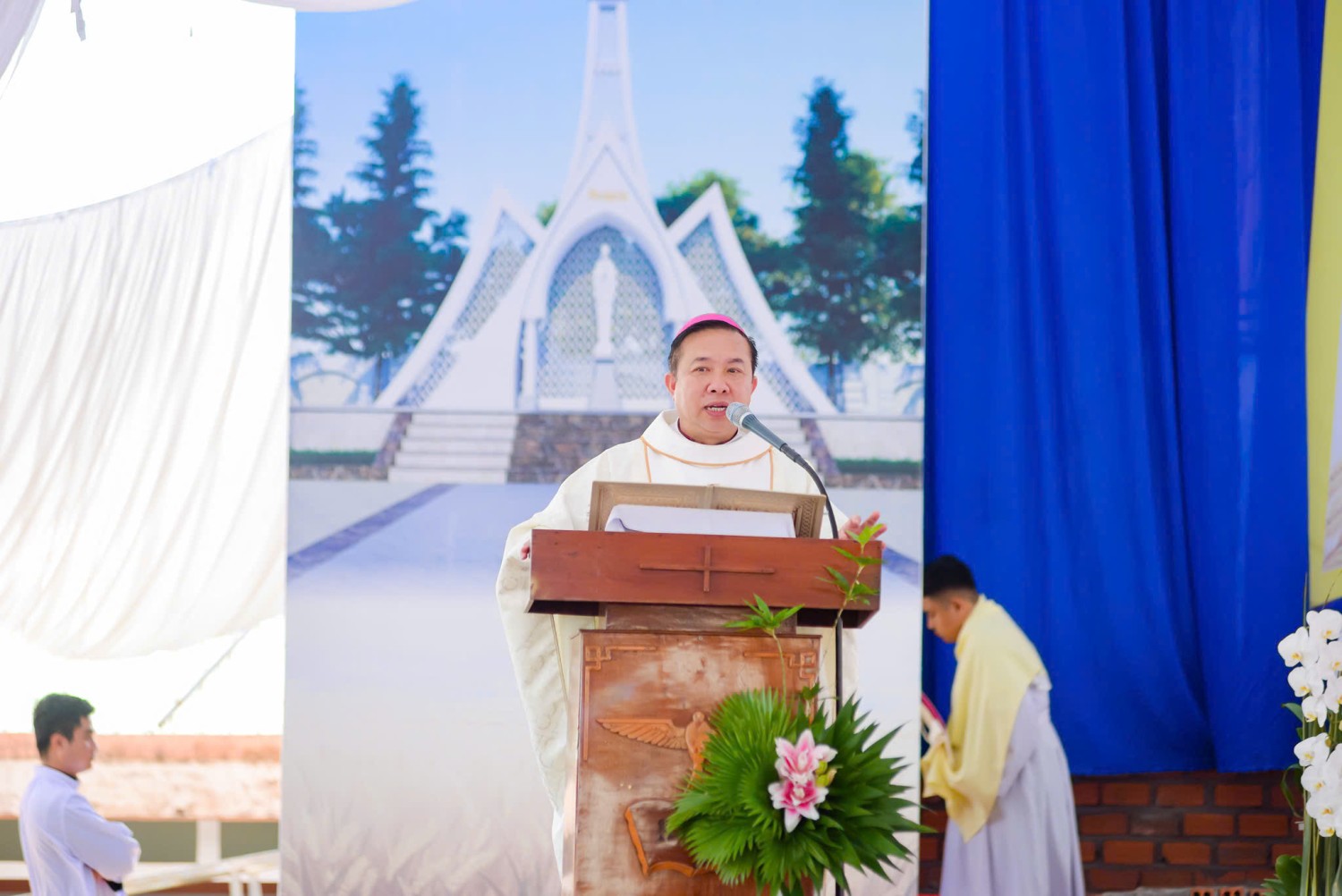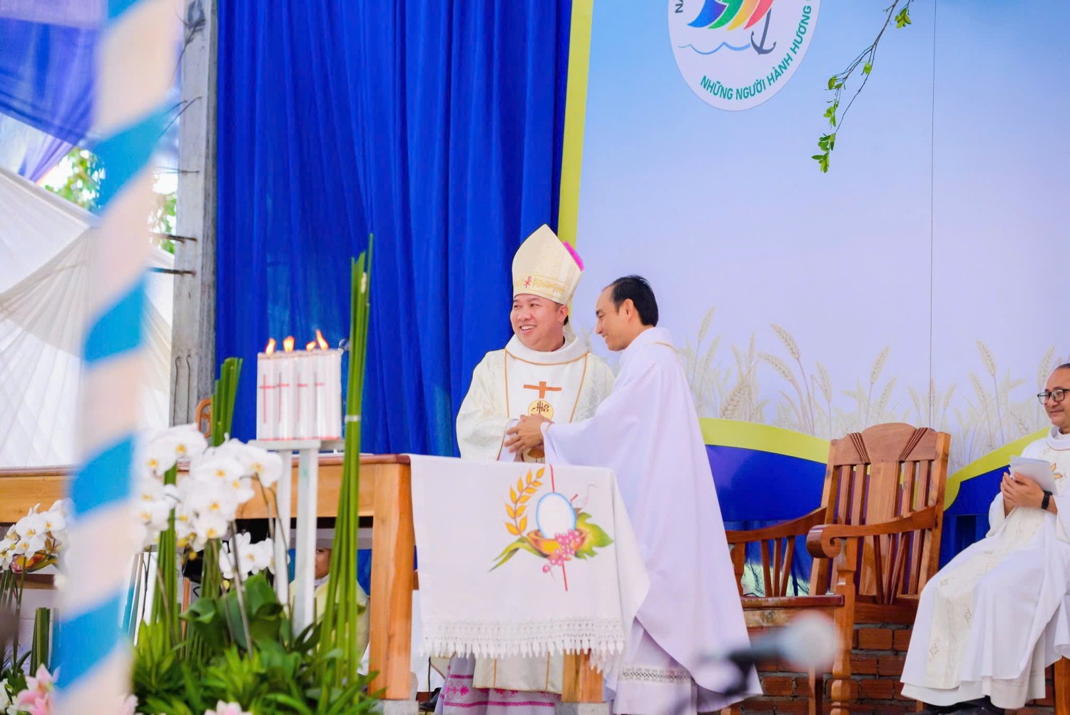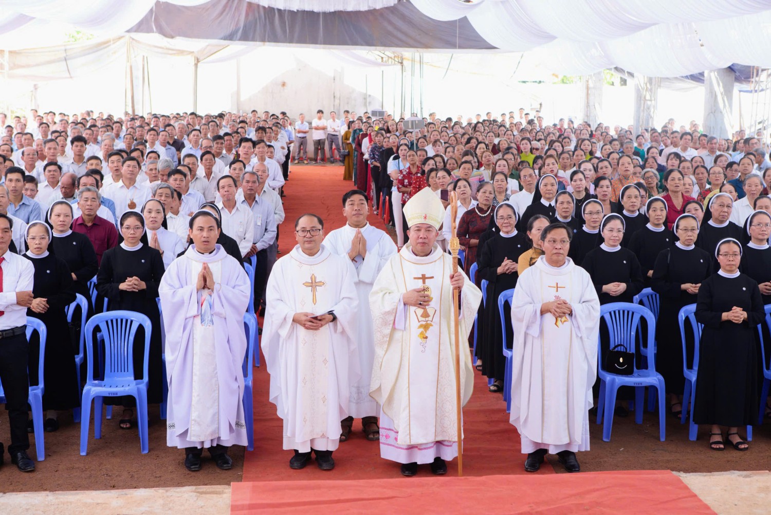 Đến hiệp dâng Thánh lễ có sự hiện diện quý báu của Đức Cha Gioan Baotixita Nguyễn Huy Bắc, Giám mục Giáo phận chủ tế Thánh lễ, cùng quý Cha đồng tế, quý Tu sĩ nam nữ, quý khách trong và ngoài Giáo phận Ban Mê Thuột, và đại diện chính quyền các cấp.