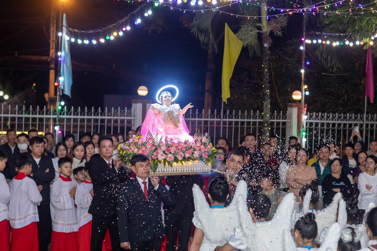 Sau những phút giây cầu nguyện và thinh lặng hồi tâm, cộng đoàn sốt sắng tham dự cuộc rước Chúa Hài Đồng. Trong đêm tối linh thiêng, ánh nến lung linh hòa quyện cùng ánh điện, trở thành biểu tượng sống động của Ánh Sáng Kitô – ánh sáng soi dẫn nhân loại tìm về với Thiên Chúa.