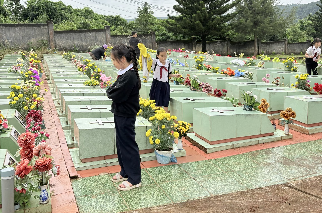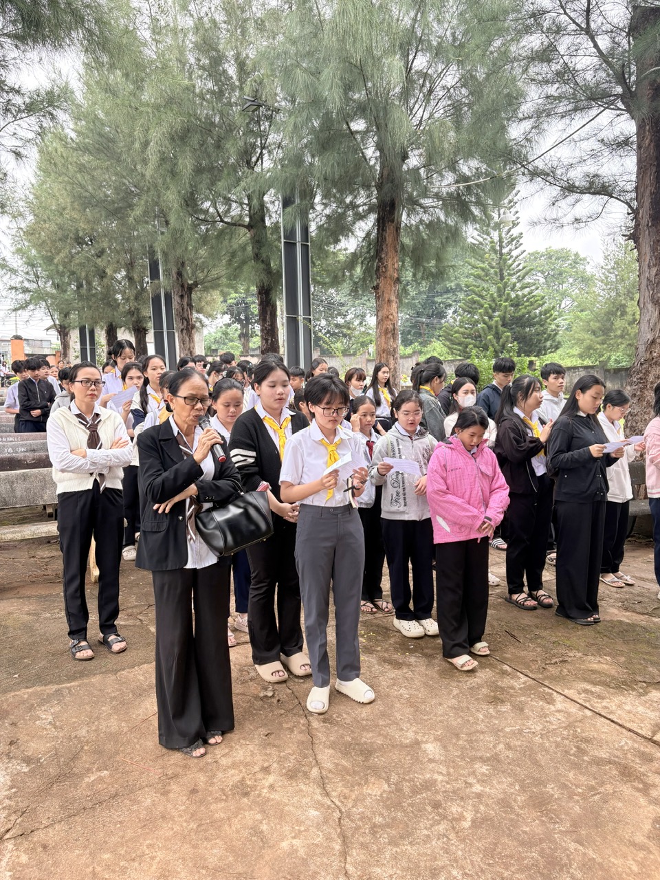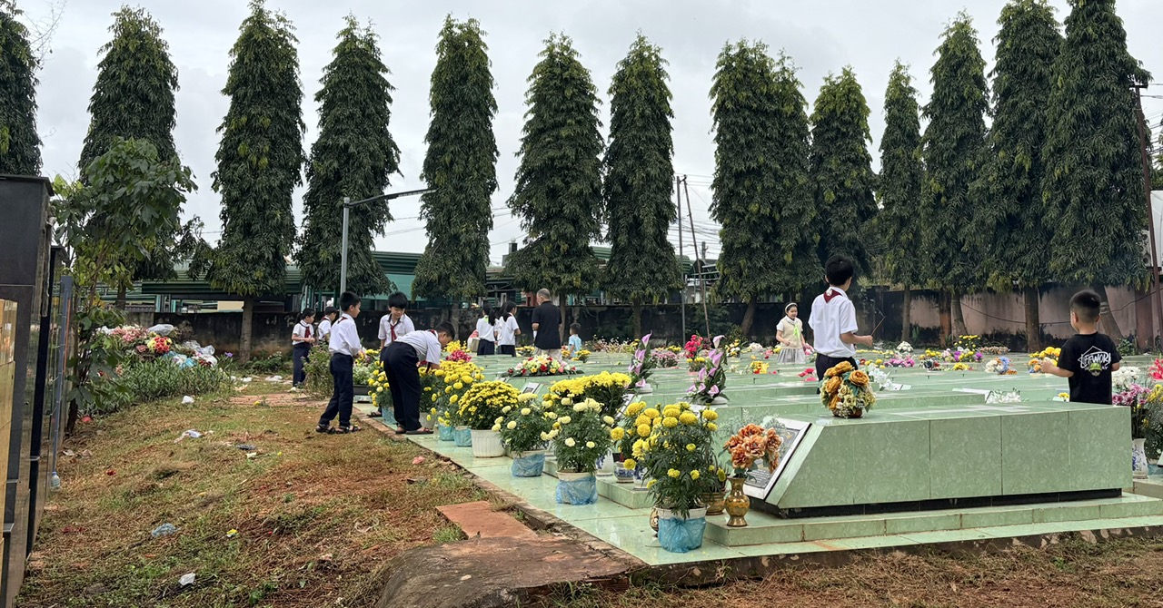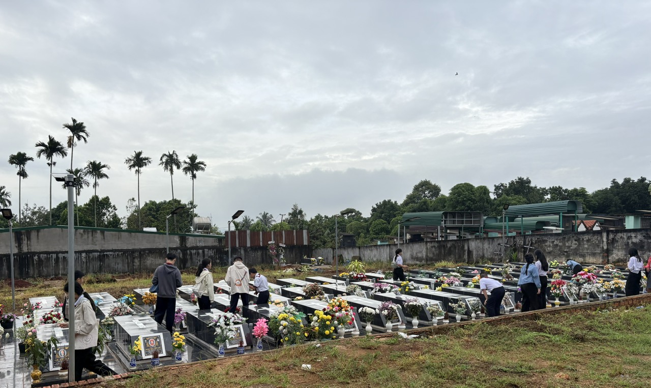 Trong thời gian cầu nguyện, các em đã cùng nhau dâng lên Chúa những lời kinh, lời hát như những bông hoa nhỏ của lòng hiếu thảo và biết ơn, tưởng nhớ các bậc tiền nhân – những người đã góp phần xây dựng và gìn giữ đức tin cho cộng đoàn hôm nay. Sau phần cầu nguyện chung, các em đã dâng hương trên phần mộ của người thân, gửi gắm niềm thương nhớ và lời cầu chúc bình an cho những linh hồn thân yêu.
