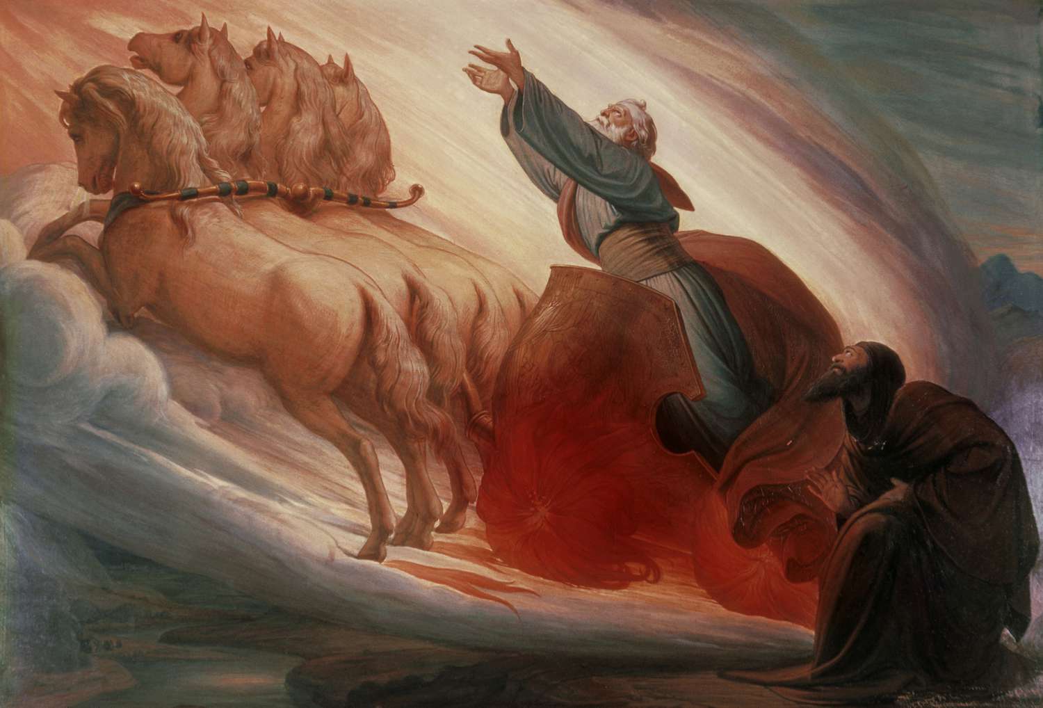 Ngôn sứ Êlia lên trời trong một cơn gió lốc. Êlisa nhìn theo và kêu lên: “Cha ơi, cha ơi! Xe chiến mã của Ítraen!”