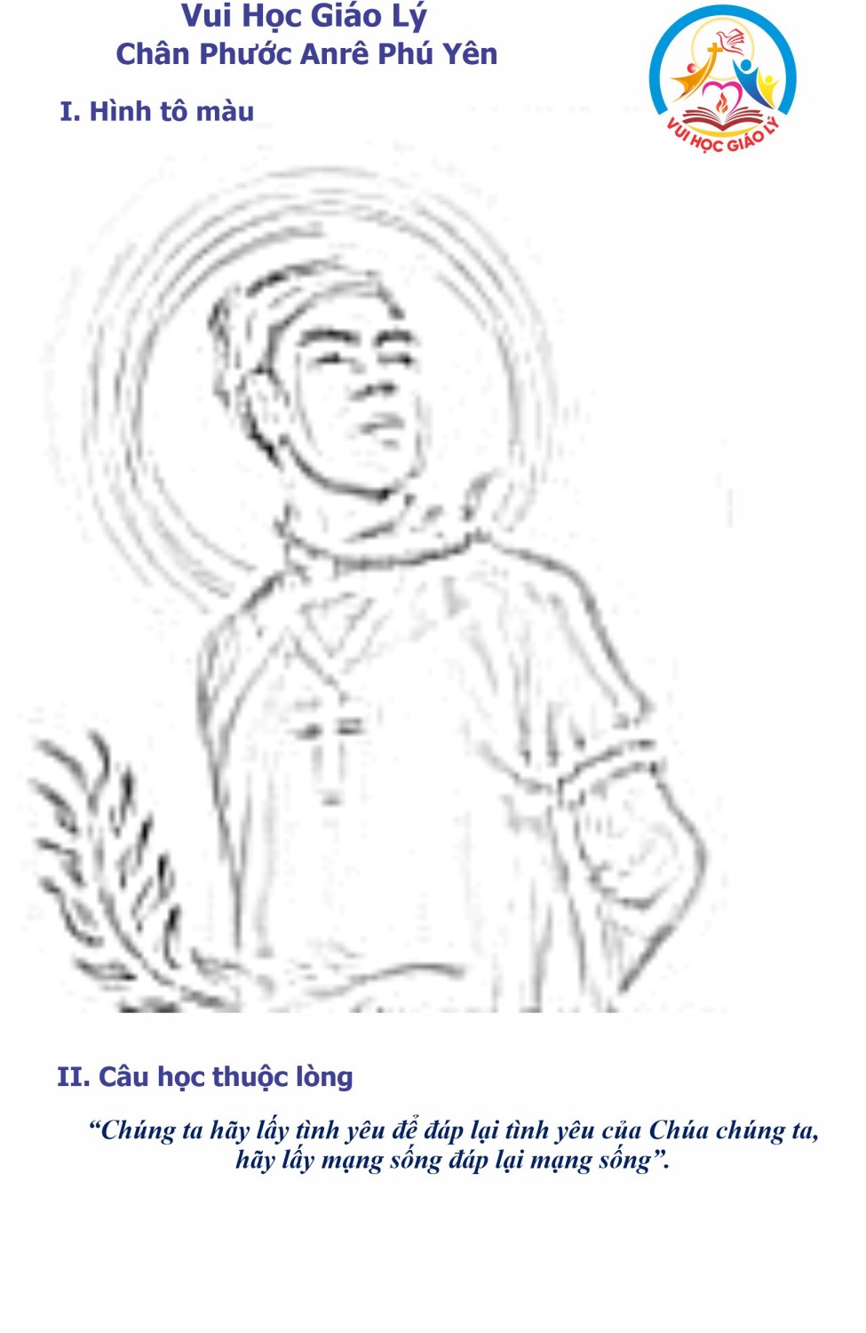 01. Hỏi:Chân phước Anrê Phú Yên là con út trong một gia đình nghèo tại xóm nhỏ ven biển, nay là giáo xứ nào, tỉnh Phú Yên, Giáo phận Qui Nhơn? - Thưa: Giáo xứ Mằng Lăng. 02. Hỏi:Chân phước Anrê Phú Yên là con út trong một gia đình nghèo tại xóm nhỏ ven biển, nay là giáo xứ Mằng Lăng, tỉnh Phú Yên, thuộc giáo phận nào? - Thưa: Giáo phận Qui Nhơn. 03. Hỏi:Thân mẫu của Chân phước Anrê Phú Yên là ai? - Thưa: Bà Gioanna. 04. Hỏi:Chân phước Anrê Phú Yên sinh năm nào? - Thưa: Năm 1625. 05. Hỏi:Chân phước Anrê Phú Yên được ai rửa tội? - Thưa: Cha Alexandre de Rhodes. 06. Hỏi:Chân phước Anrê Phú Yên được rửa tội năm nào? - Thưa: Năm 1641. 07. Hỏi:Chân phước Anrê Phú Yên tử đạo tại Gò Xử, Thành Chiêm, Điện Bàn, Quảng Nam, nay là giáo họ Phước Kiều, thuộc giáo xứ nào? - Thưa: Giáo xứ Hội An. 08. Hỏi:Chân phước Anrê Phú Yên tử đạo tại Gò Xử, Thành Chiêm, Điện Bàn, Quảng Nam. Nay là giáo họ Phước Kiều, giáo xứ Hội An, thuộc giáo phận nào? - Thưa: Giáo phận Đà nẵng. 09. Hỏi:Chân phước Anrê Phú Yên tử đạo tại Gò Xử, Thành Chiêm, Điện Bàn, năm nào? - Thưa: Năm 1644. 10. Hỏi:Thầy giảng Anrê Phú Yên được Đức Giáo Hoàng nào tuyên phong chân phước? - Thưa: Đức Giáo Hoàng Gioan Phaolô II. 11. Hỏi:Chân phước Anrê Phú Yên được tuyên phong vào năm nào? - Thưa: Năm 2.000. 12. Hỏi:Chân phước Anrê Phú Yên được Giáo Hội Việt nam mừng kính vào ngày nào? - Thưa: Ngày 26 tháng 7.